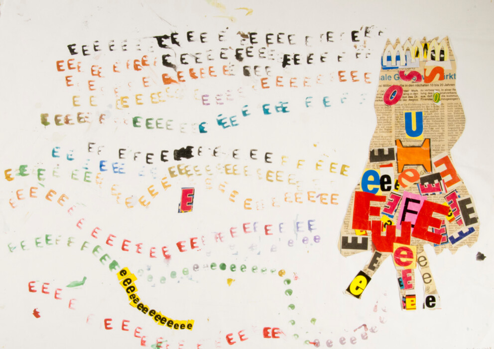 Bunte Collage: Bild und Schrift