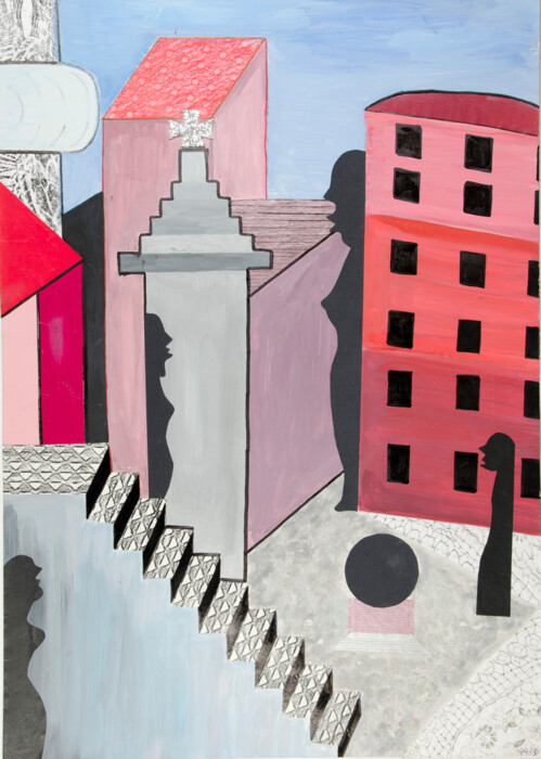 Mischtechnik: Collage, Bleistift, Filzstift, Deckfarben