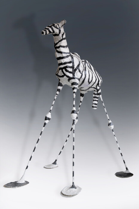 Abfallmaterial, Stelzen, Kreppband, Draht, Klebstoff, Pappmaché