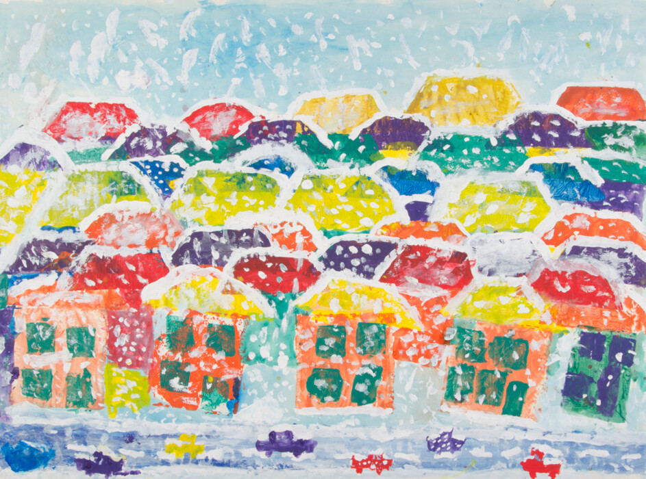 Bunte Häuser im Schnee