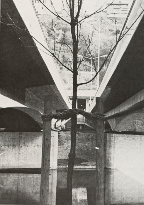 Foto: Zwischen Gebäuden eingezwängter Baum
