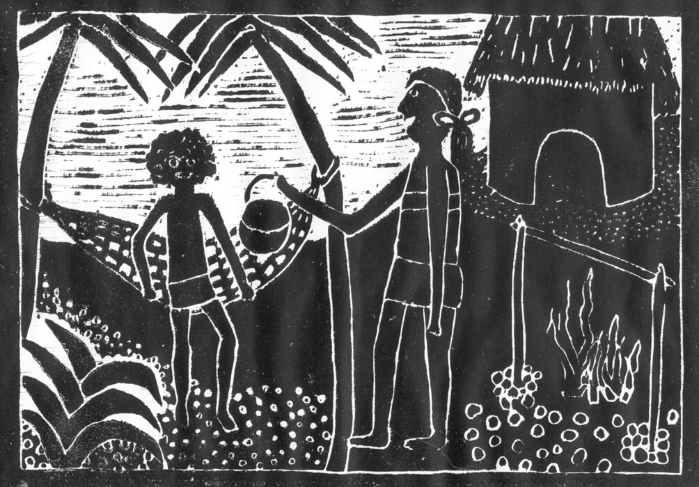 Eine Indianerfrau bringt ihrem Kind das Essen