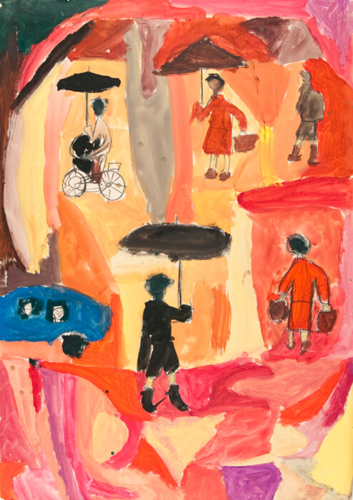 Menschen mit Regenschirm