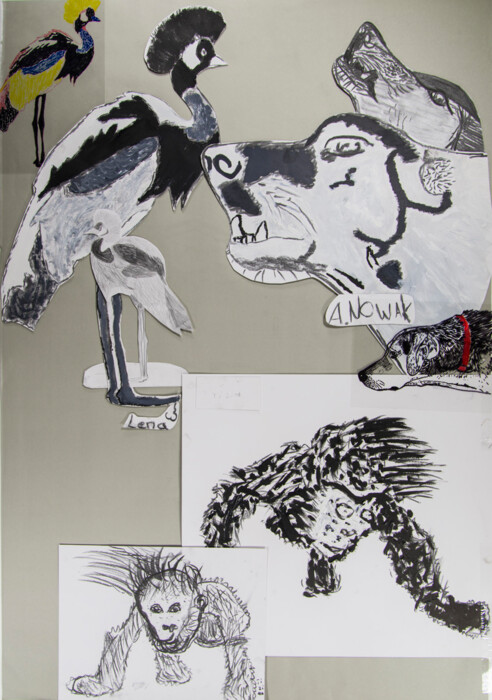 3. Rasterzeichnung auf eine eine Overhead-Folie: Abzeichnen eines Tieres, Fellstudien