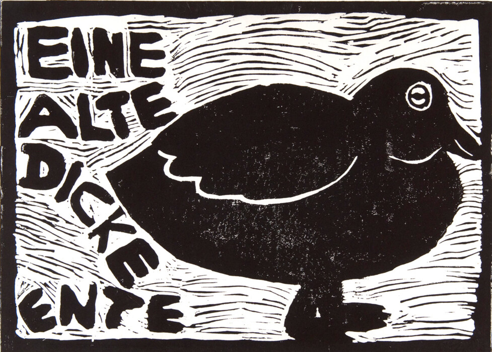 Ente mit Schrift