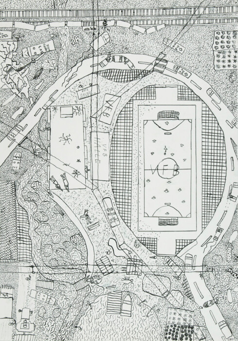 Gegend um Fußballplatz von oben