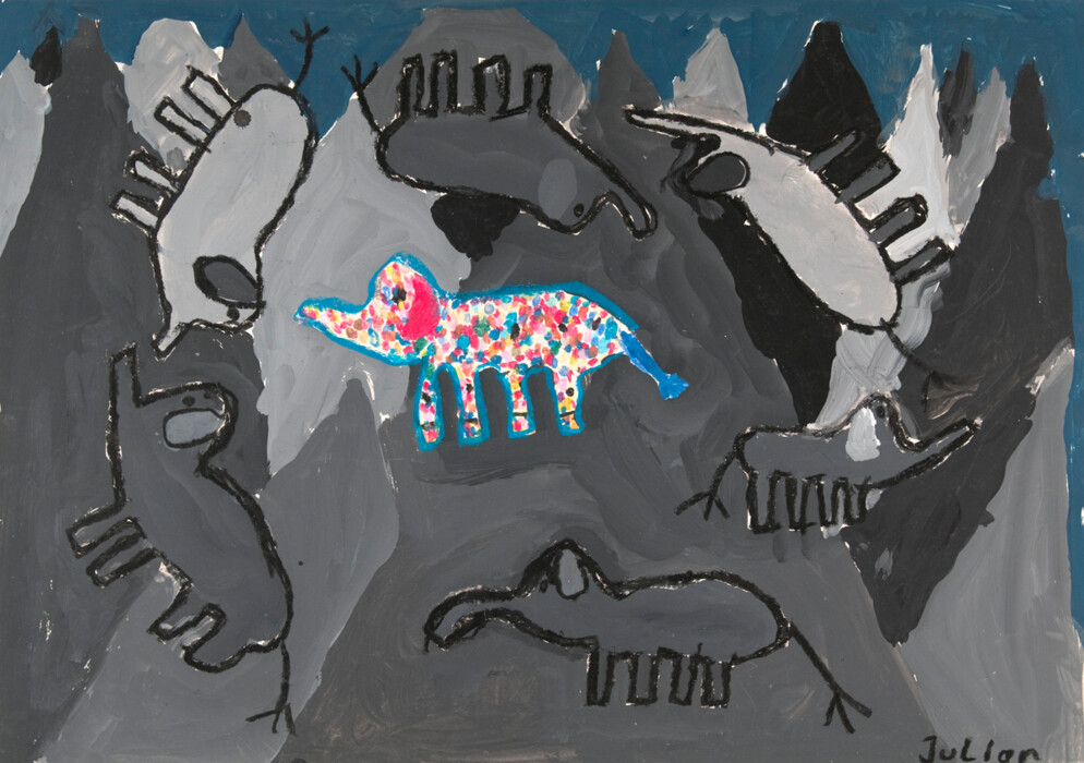 Mischtechnik: Ölpastellkreiden und Dispersionsfarben