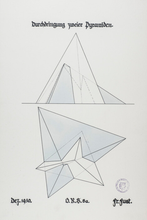 Tuschezeichnung mit Lineal, farbige Holzstifte