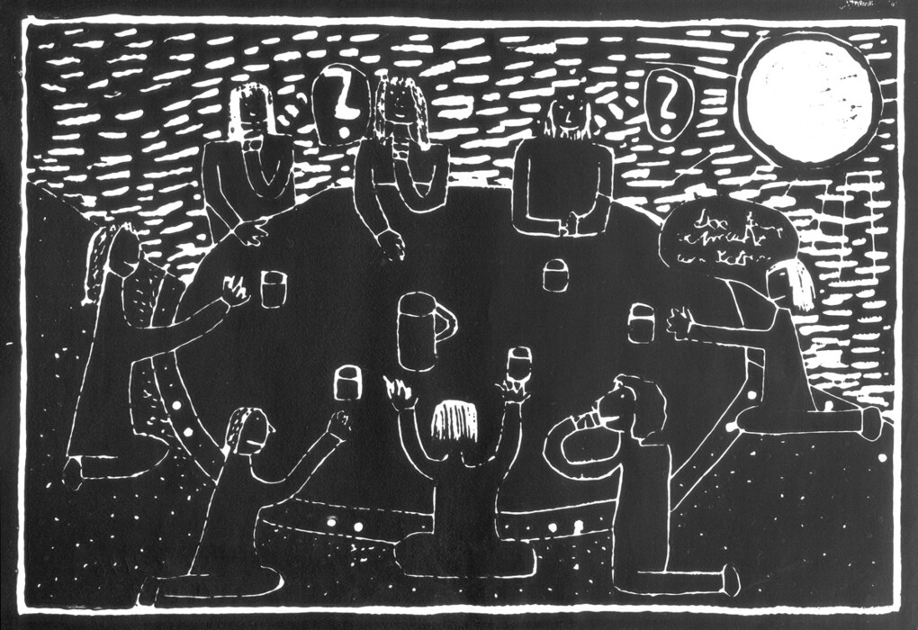 Gegenwart 2: Das Mondfest. Bei Vollmond feiern die Geister ein Fest. Dazu sind alle Verwandten gekommen.