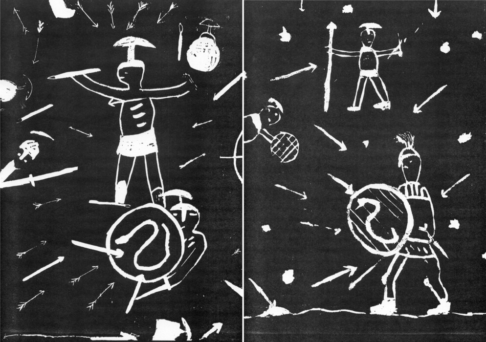 die Pfeile flogen an die Schilde