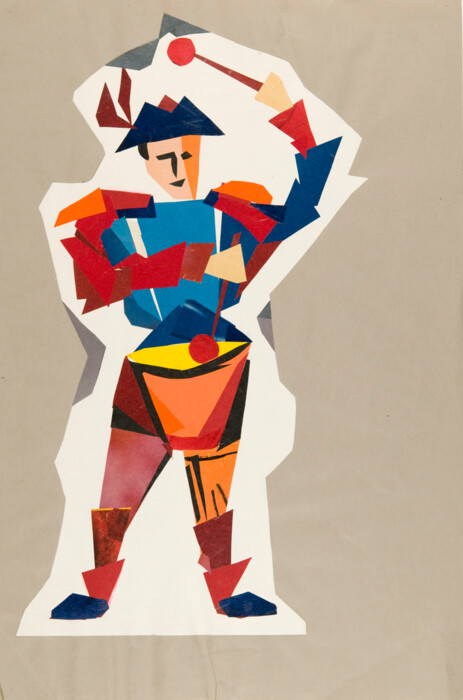 Bunte Papiere aus Zeitschriftenfotos, geomterische Formen ausgeschnitten und aufgeklebt